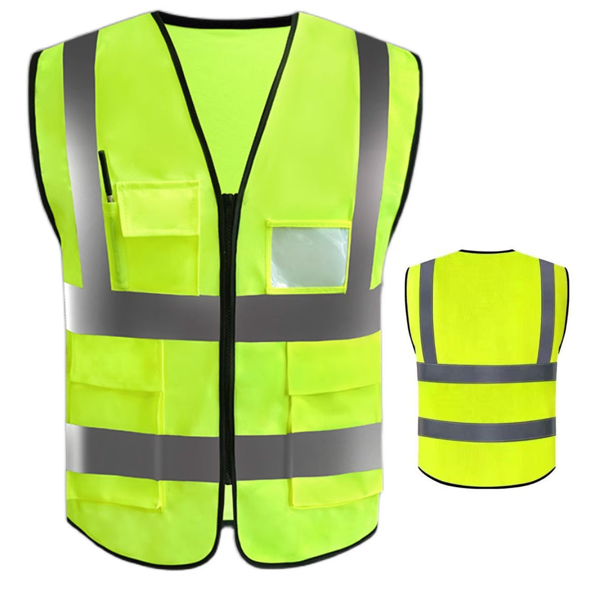 Nosso colete de Sinalização refletivo, é especial para manter sua segurança no trabalho. Pois é fluorescente, e possui faixas de sinalização para que seja visto à longa distância. Além disso, Possui dois bolsos grandes em sua parte inferior para que possa guardar alguns objetos. Um porta crachá que será útil para deixar suas identificação visível; Um bolso porta caneta.